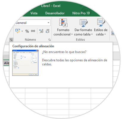 - Dar clic sobre el botón inferior derecho en el grupo Alineación llamado Configuración de alineación