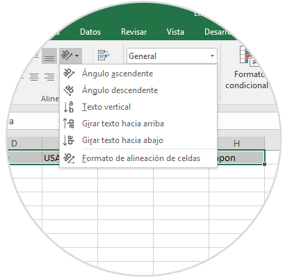 1. Cómo rotar el texto en Excel 2016 usando la opción Orientación