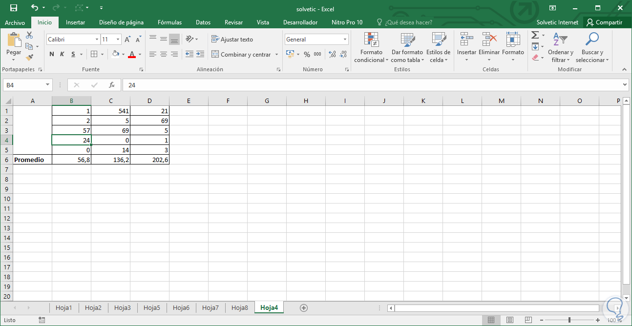 Una vez seleccionada la opción Valores pulsamos en Aceptar para guardar los cambios. Con este método hemos convertido las formulas en valores estáticos y para comprobarlo modificaremos diversos valores y veremos que los datos no han sido modificados: