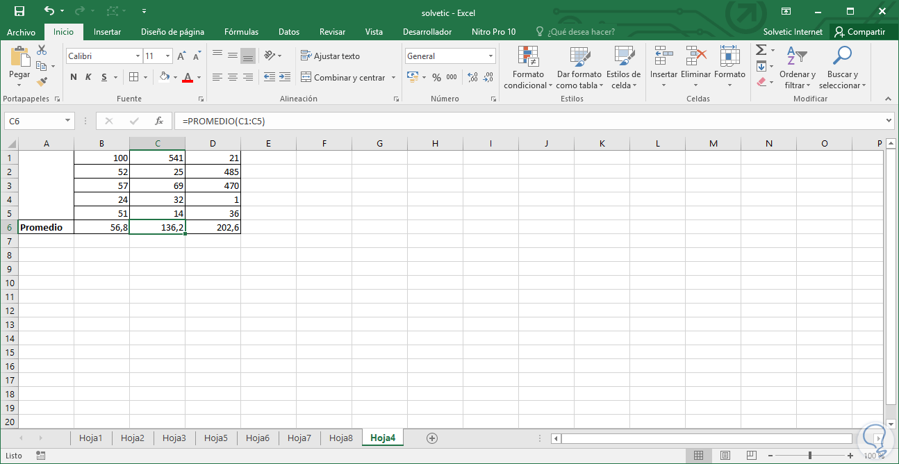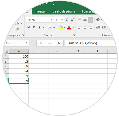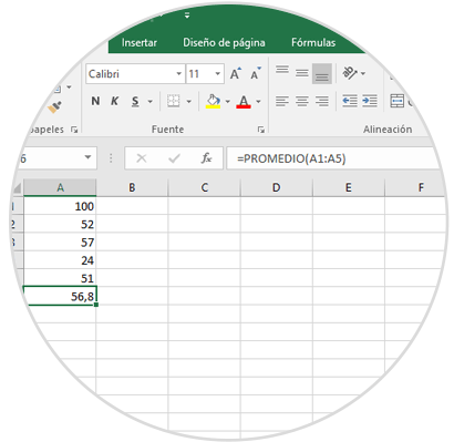 Un ejemplo práctico es el siguiente: tenemos una fórmula para calcular el promedio en el rango A1:A5: