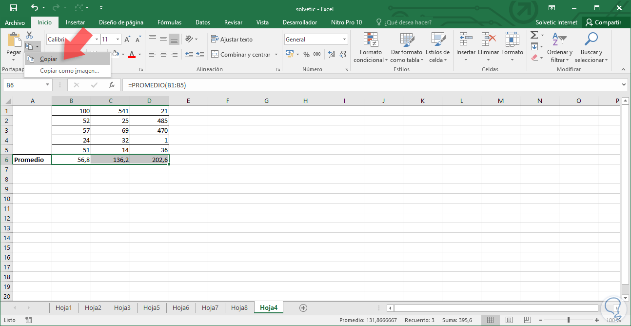 - Dando clic derecho sobre alguna de las celdas seleccionadas y eligiendo la opción Copiar