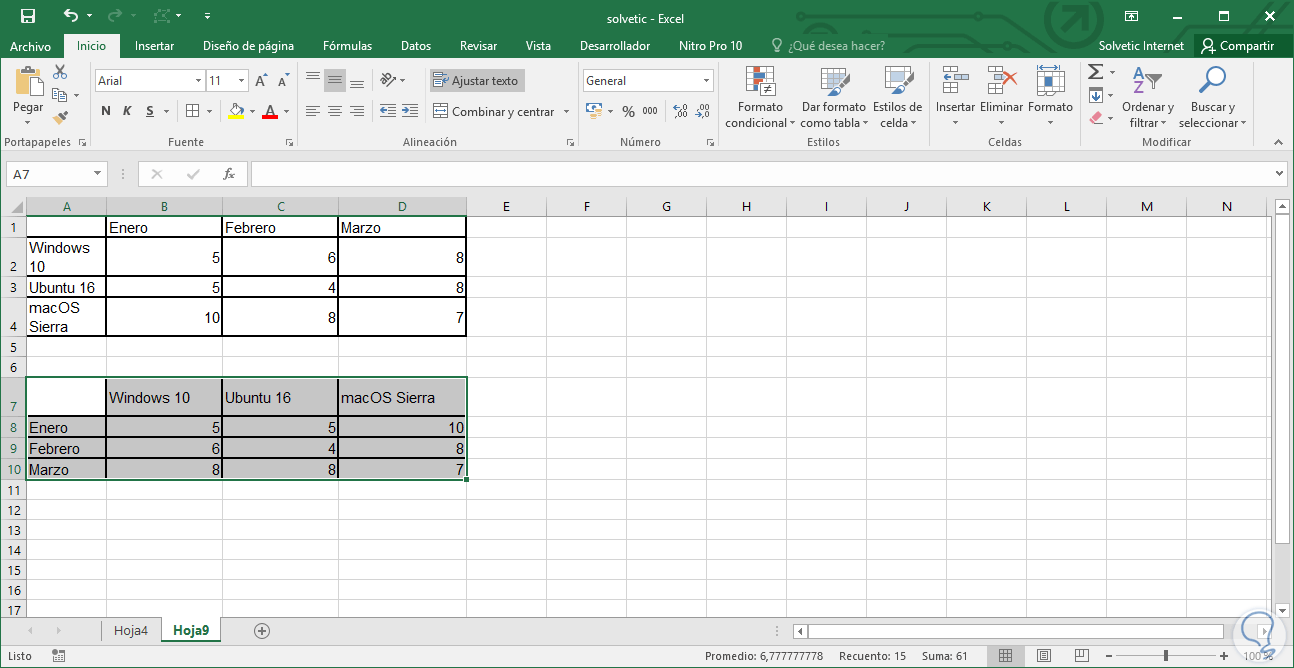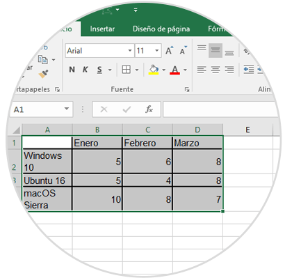 2. Transponer los datos en Excel 2016