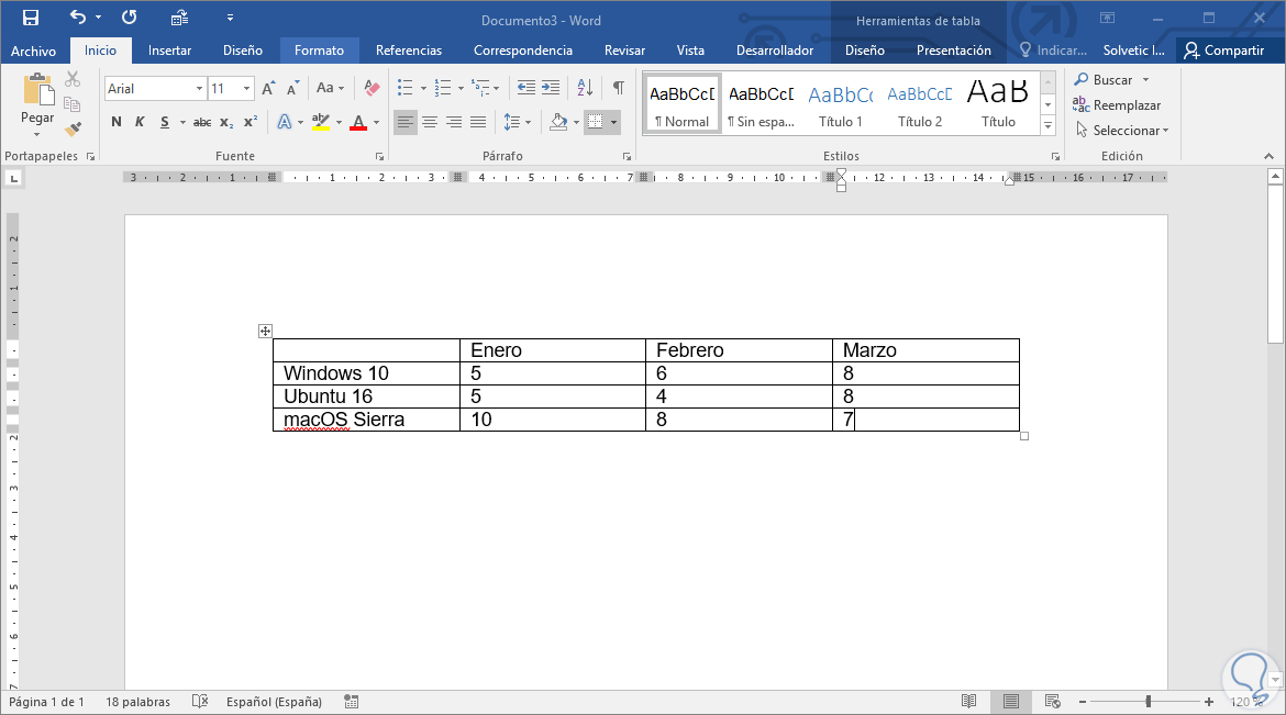 Podemos ver que los datos han sido transpuestos de forma correcta ya que las filas ahora están como columnas y las columnas como filas. Ahora solo resta copiar esta tabla y pegarla en Word 2016 para tener los resultados deseados:
