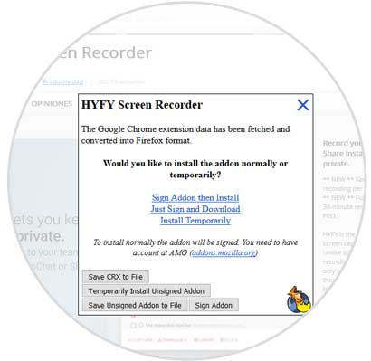 - Sign Addon then Install: Esta opción aplica si hemos de usar la extensión de forma permanente en Mozilla Firefox