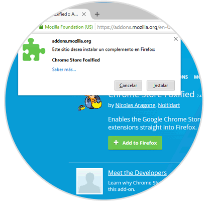 Pulsamos en el para realizar el proceso de instalación en Mozilla Firefox de la extensión de Chrome para lo cual la extensión se descarga desde Google Chrome y realiza el proceso de compatibilidad, veremos el siguiente resultado: