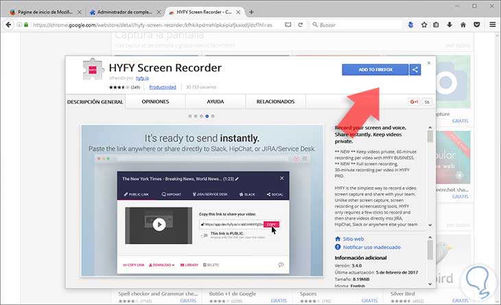 Pulsamos en la opción Add to Firefox para agregar este complemento a nuestro navegador.