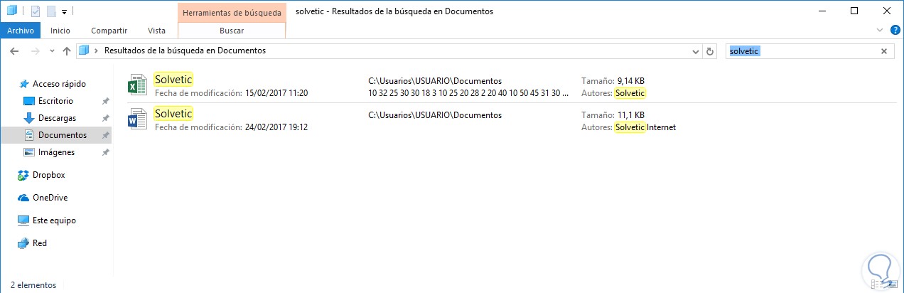 Si no recordamos el nombre del archivo podemos usar las extensiones de las aplicaciones para una búsqueda general así: