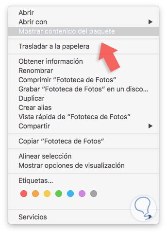 A continuación daremos clic derecho sobre la carpeta Fototeca de Fotos y seleccionamos la opción Mostrar contenido del paquete