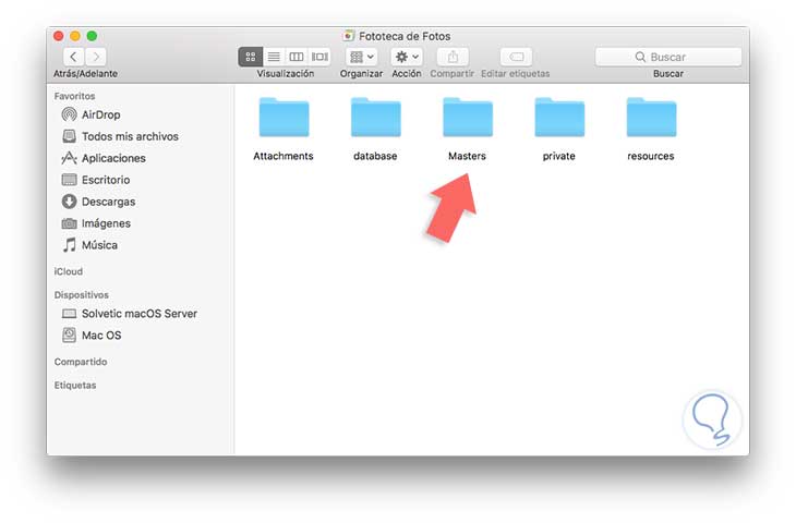Allí daremos doble clic sobre la carpeta Masters y de este modo accederemos a las fotos que son administradas por la aplicación Fotos.