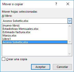 Se desplegará el siguiente asistente donde tenemos dos opciones para mover la hoja seleccionada: