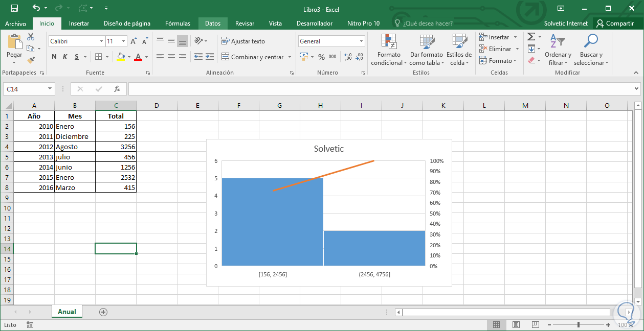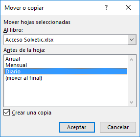 En este caso hemos definido que la hoja vaya antes de la hoja Diario en el libro Acceso Solvetic (Actual), pulsamos en Aceptar y podemos ver el resultado: