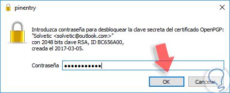 Debemos reingresar la contraseña y pulsamos en OK y el resultado será el siguiente: