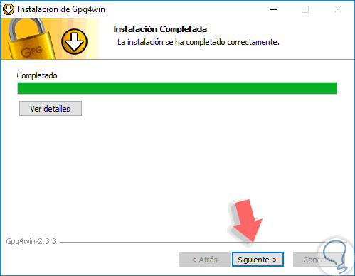 El proceso de instalación de Gpg4win es sencillo, basta con ejecutar el archivo descargado y seguir los pasos del asistente.