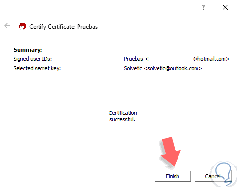 Pulsamos en Certify para completar el proceso de certificación y será necesario ingresar la contraseña que hemos establecido anteriormente: