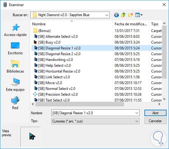 2. Instalación de los cursores en Windows 10