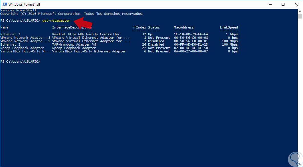 4. Cómo saber la MAC de mi PC Windows 10 con PowerShell