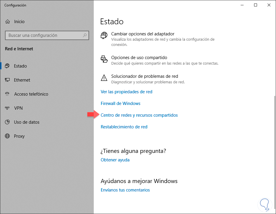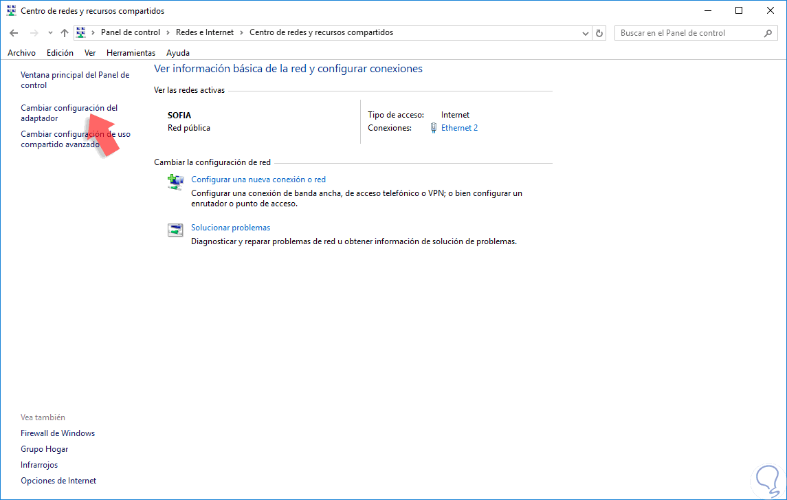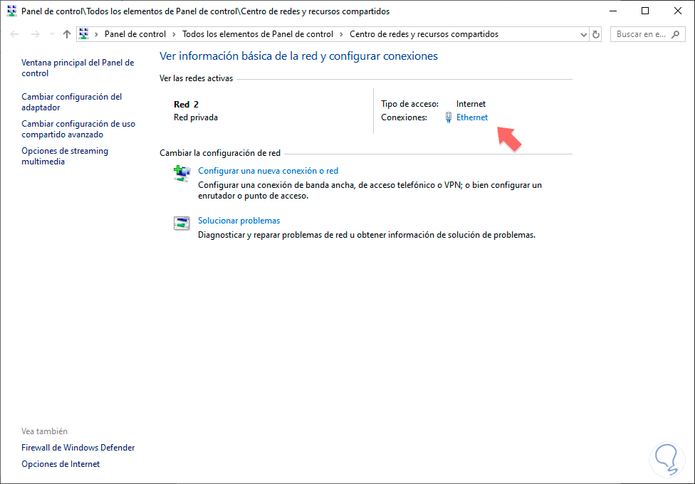 Ahora entra dentro de la opción de “Centro de red y recursos compartidos”