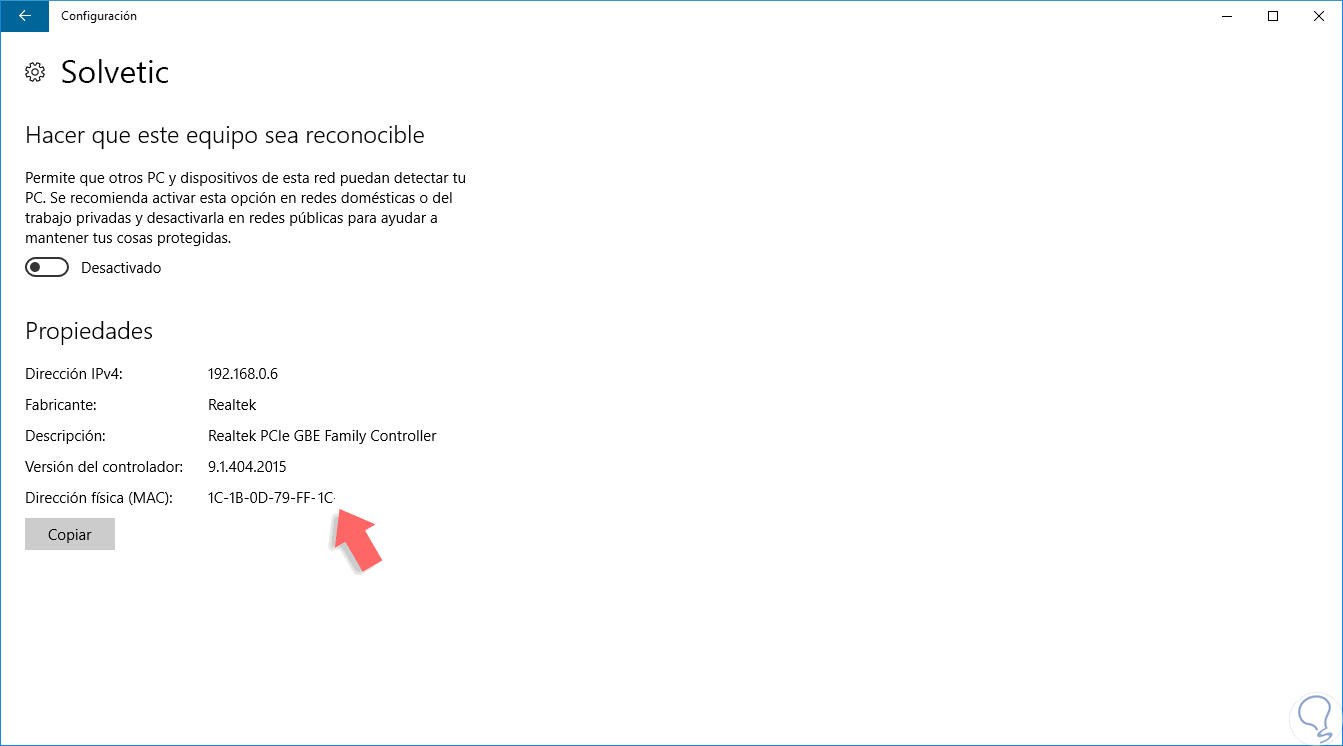 2. Cómo saber la MAC de mi PC Windows 10 Configuración