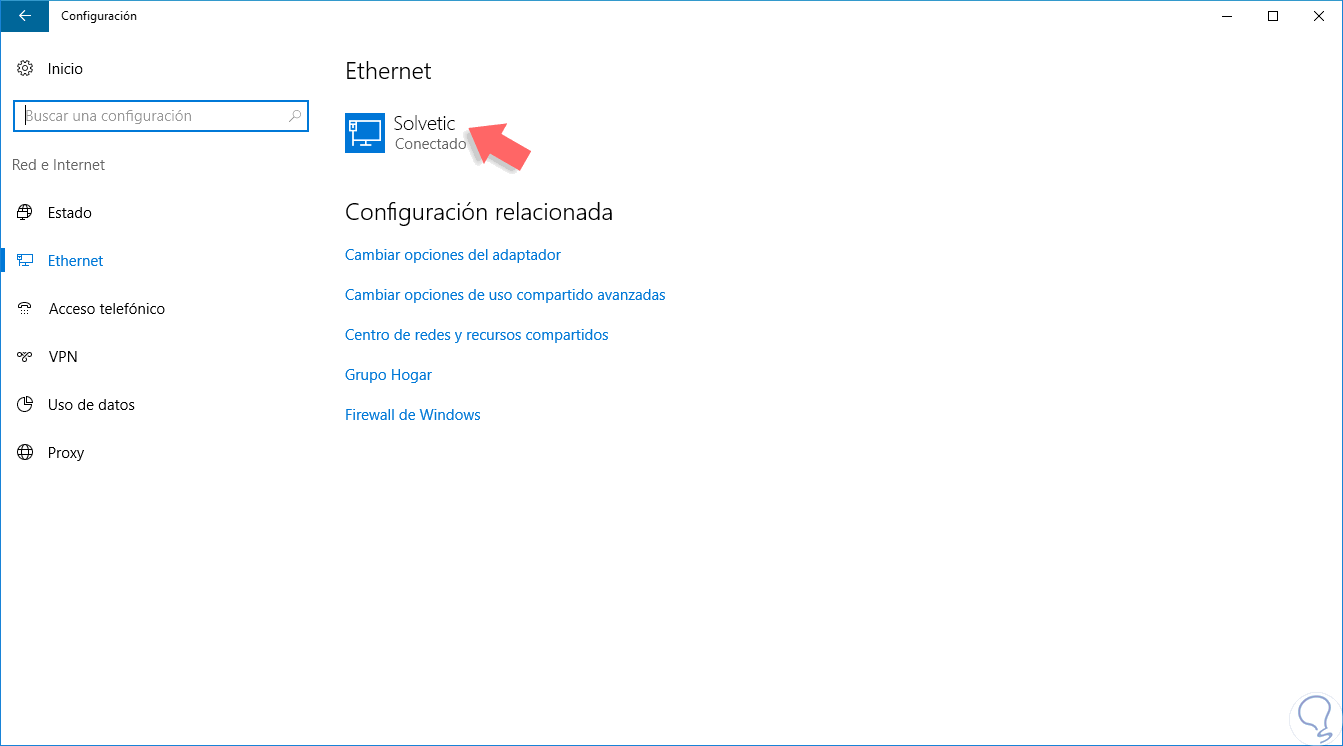 En esta ventana pulsamos dentro de nuestra conexión ya sea WiFi o Ethernet.