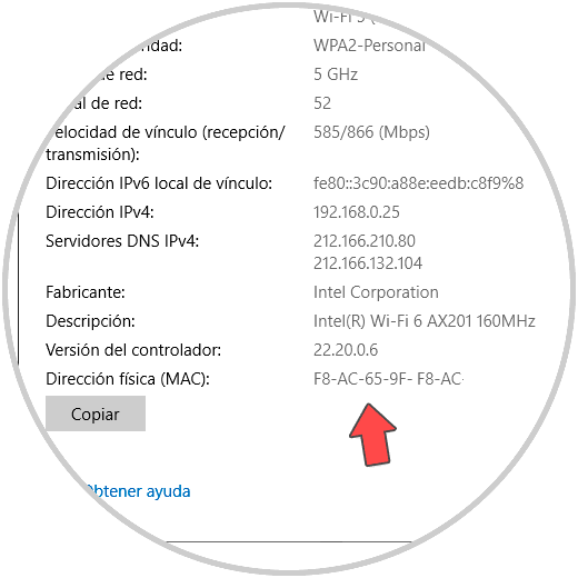 6. Cómo saber la MAC de mi PC Windows 10 con WFi