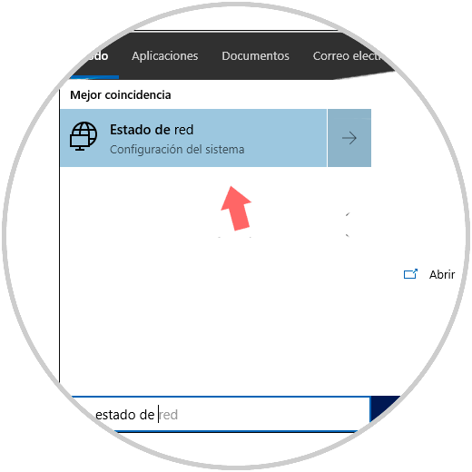 Lo primero es escribir estado de red en el buscador de Windows 10 y pulsar sobre la opción cuando nos salga en el listado.