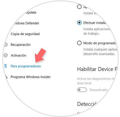 4. Activar Modo desarrollador Windows 10 versiones antiguas