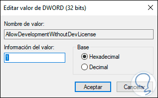 En este caso editamos el valor DWORD en 1. Damos clic en Aceptar para guardar los cambios, si deseamos desactivarlo debemos establecerlo en cero.