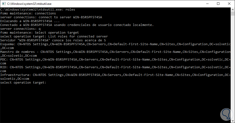 2. Verificar roles FSMO en Windows Server 2016 usando NTDSUTIL