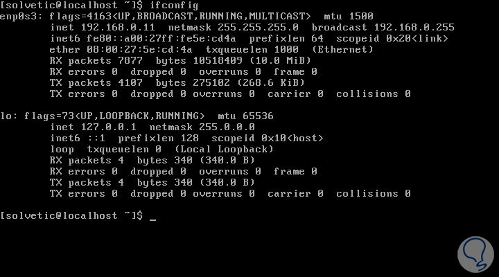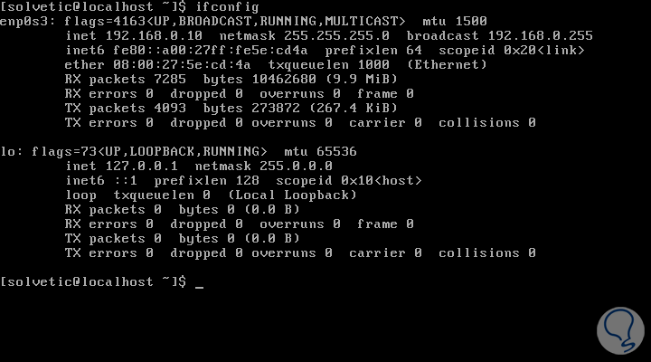 Al ejecutar el comando ifconfig vemos que nuestro adaptador es enp0s3: