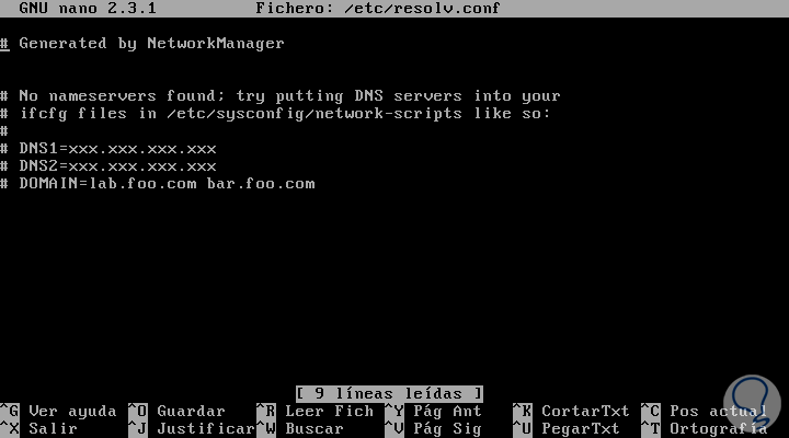 Ahora debemos ir a la ruta /etc/resolv.conf para establecer los valores del servidor DNS, podemos ver que por defecto esta vacía: