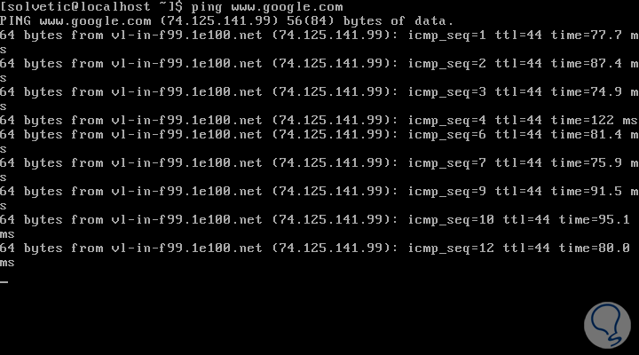 Ahora podemos comprobar que la navegación este correcta haciendo ping a algún sitio web: