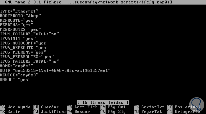 sudo nano /etc/sysconfig/network-scripts/ifcgfg-enp0s3