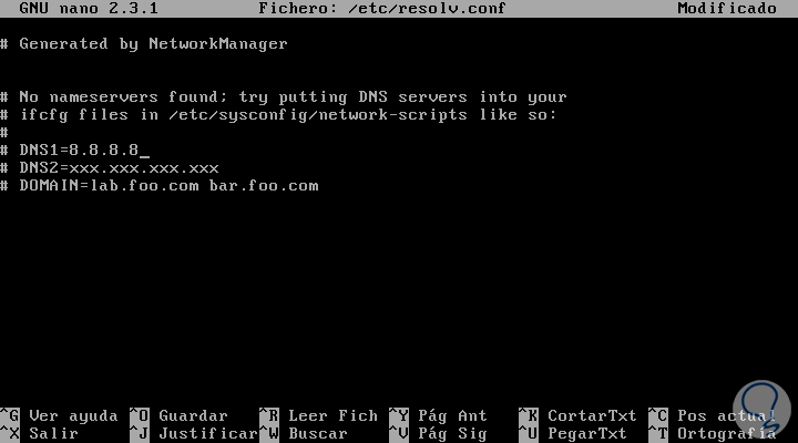 Podemos agregar el nuevo servidor DNS usando alguno público como el de Google (8.8.8.8):
