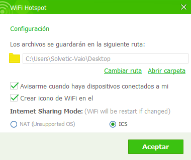 Cómo véis la configuración es muy sencilla y carga rápido. Lo mejor es probarlo. En la configuración, podéis activar recibir avisos cada vez que se conecte un dispositivo o cambiar la ruta del Hotspot etc.