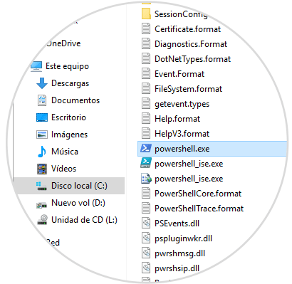 Allí daremos doble clic sobre el ejecutable powershell.exe.