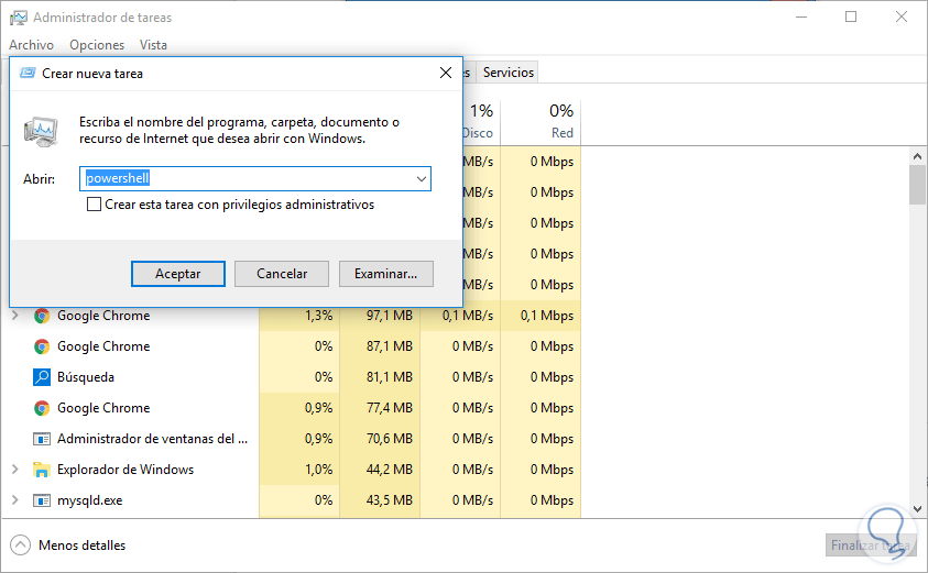 6. Abrir Windows PowerShell desde el Administrador de tareas en Windows 10