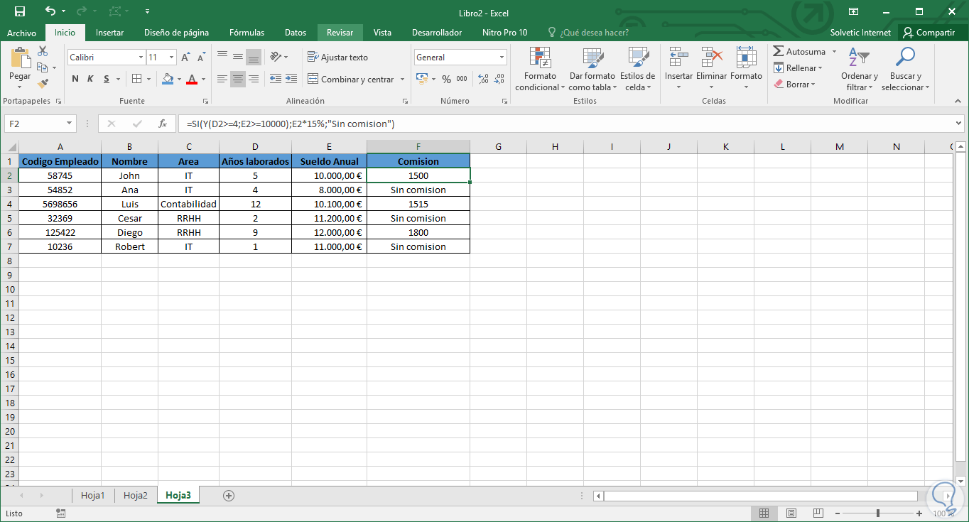 =SI(Y(D2>=4;E2>=10000);E2*15%;"Sin comisión")