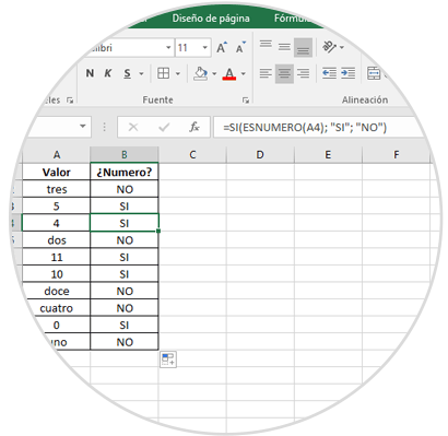 Para esto agregaremos la función ESNUMERO y esta será la sintaxis: