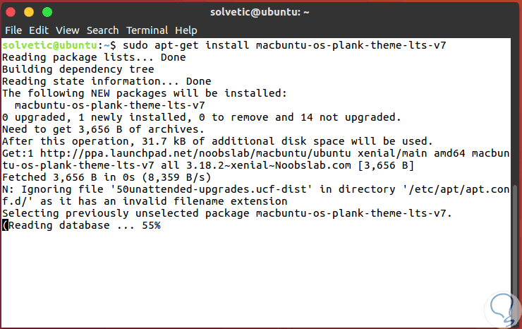 Del mismo modo aceptamos la descarga e instalación de los paquetes. Ahora debemos instalar los temas de Plank, para ello usaremos la siguiente línea:
