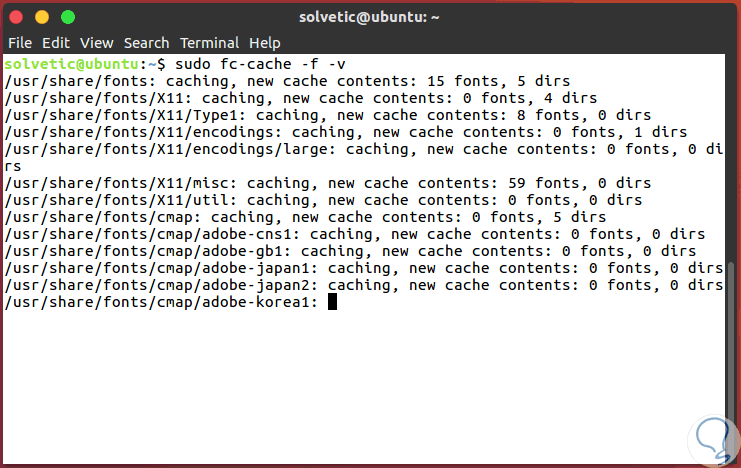 sudo fc-cache -f –v