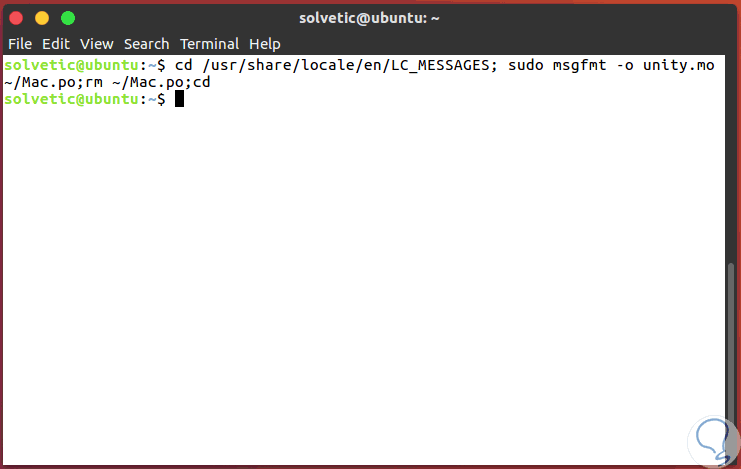 cd /usr/share/locale/en/LC_MESSAGES; sudo msgfmt -o unity.mo ~/Mac.po;rm ~/Mac.po;cd