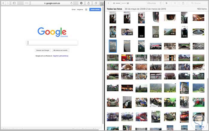 Ahora veremos que cada una de las aplicaciones está a un costado de la pantalla en macOS Sierra: