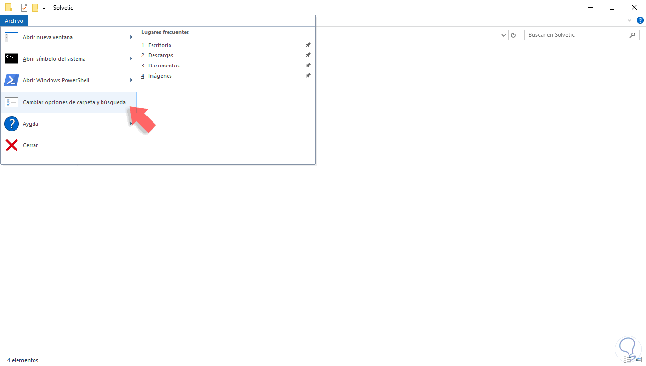 Usando el menú Archivo / Cambiar opciones de carpeta y búsqueda