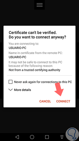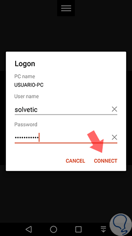 Nuevamente pulsamos en Connect y estableceremos la conexión con el equipo Windows 10: