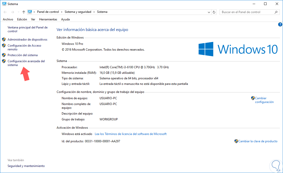 • Usando la siguiente ruta del panel de Control: Panel de control\Sistema y seguridad\Sistema.