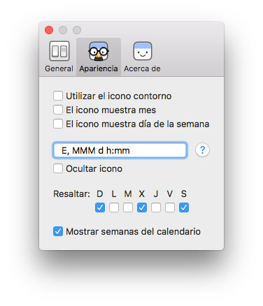 Ahora vamos nuevamente a Preferencias de Itsycal y estableceremos el respectivo formato de fecha y hora según sea necesario: