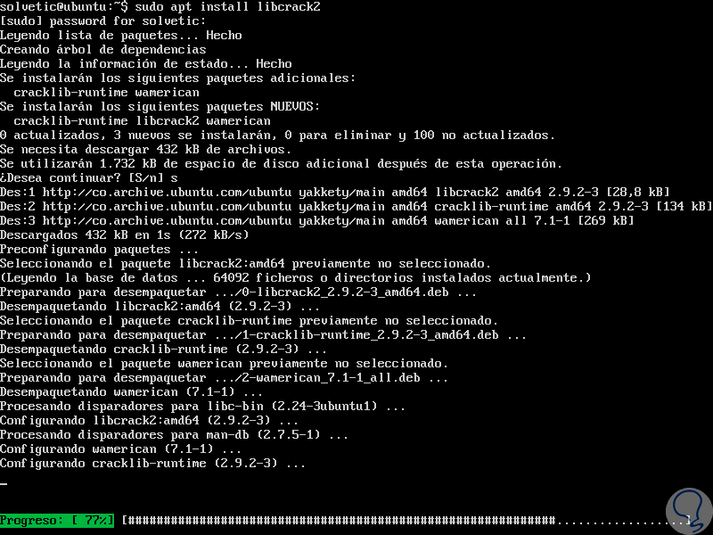 Para instalar cracklib en Ubuntu o Debian usaremos el siguiente comando: