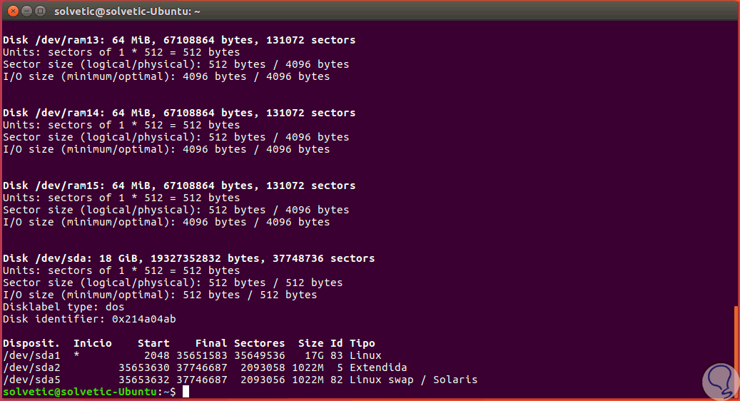 A continuación podremos usar alguno de los siguientes comandos para validar la partición de Linux:
