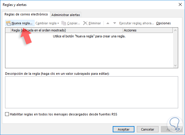 Se desplegará la siguiente ventana donde seleccionamos la opción Nueva regla: