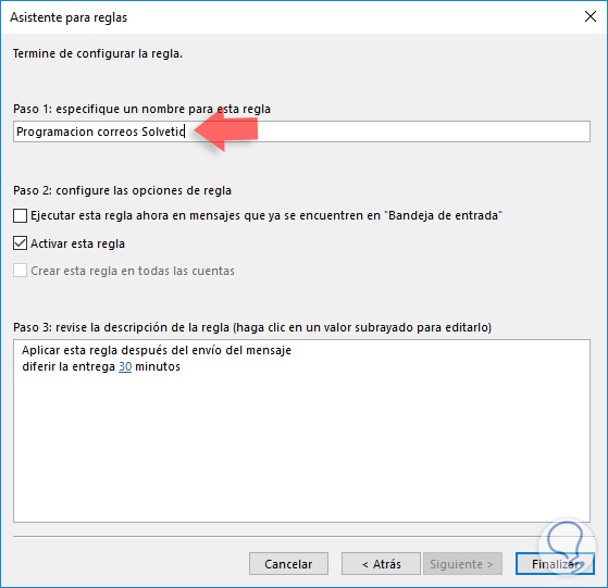 En caso de tener más cuentas de Outlook debemos activar la casilla Crear esta regla en todas las cuentas.